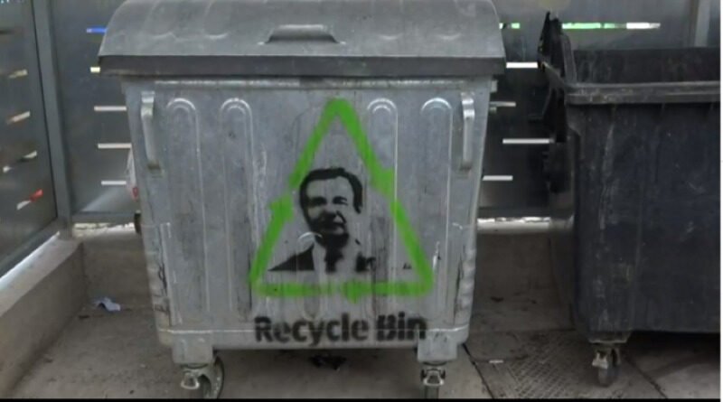 Ata vendosën fytyrën e Albin Kurtit në kontejnerët e mbeturinave që riciklohen.