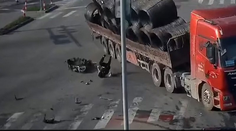 Në video shihet motoçiklisti që hyri me të kuqe në kryqëzim dhe u përplas me kamionin.