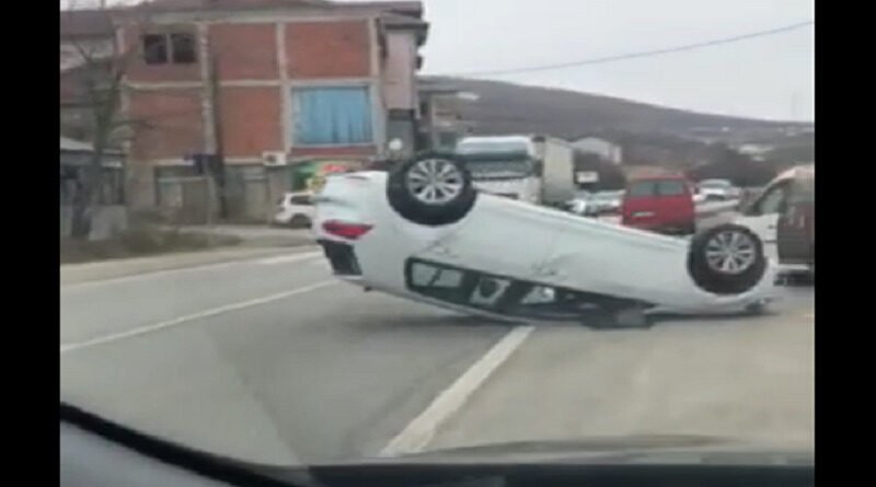 Në një video të dërguar nga një lexues shihet një veturë e cila është rrotulluar.