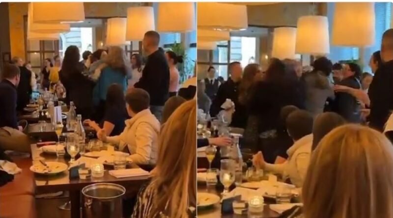 Në restorantin luksoz situata duket se degradoi, teksa një nënë po mbronte edhe vajzën e saj. Nuk dihen arsyet që çuan në këtë sherr masiv, teksa njerëzit në restorant ishin mbledhur për festë./bw