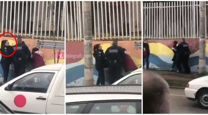 Në video e cila ka arritur në redaksi të Telegrafit shihet se polici tjetër vetëm qëndron duke e shikuar kolegen.