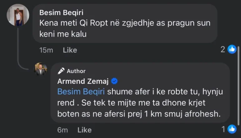 Teksa një komentues i shkoi Zemajt se “Kena me ti q* robt në zgjedhje as pragun s’keni me e kalu”.