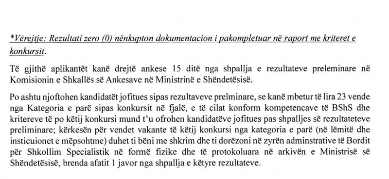 Arsyeja: “dokumentacion i pakompletuar në raport me kriteret e konkursit”.