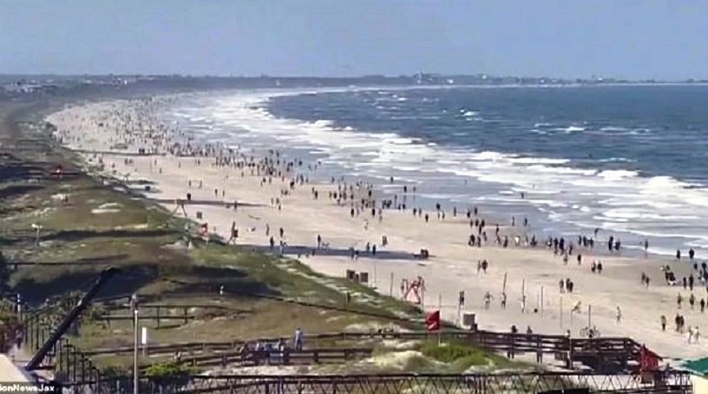 Qindra njerëz ia kanë mësyrë plazhit në Jacksonville të Floridës në Shtetet e Bashkuara, pas hapjes së kësaj hapësire detare për publikun, pavarësisht pandemisë së koronavirusit.