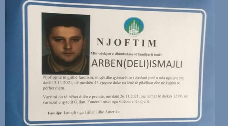 “Me dhimbje të thellë njoftojmë shokët, miqtë e dashamirët se në New Jersey-ShBA ka ndërruar jetë Arben Deli Ismaili nga Gjylekari, me banim në Gjilan. Varrimi i të ndjerit bëhet të premten, në ora 12:00 në varrezat e Gjilanit”, thuhet në njoftim.