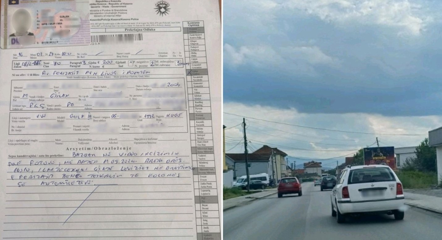 Njësiti Rajonal i Trafikut Rrugor Gjilan ka identifikuar dhe shqiptuar gjobën në vlerë prej dyqind (200) euro, dy (2) pikë negative dhe masën e përkohshme të ndalim drejtimit të mjeteve motorike në afat prej tre (3) muaj ndaj kundërvajtësit i cili në foton e dërguar në E-mailin zyrtar shihet duke bërë tejkalim të kolonës, thuhet në njoftim.