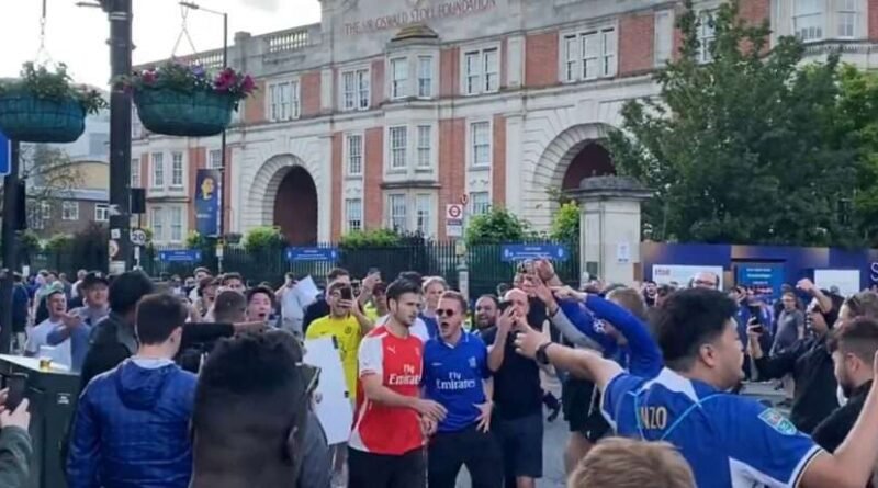 Pasi përfundoi ndeshja në “Emirates” një tifoz me fanellën e Arsenalit kaloi afër mbështetësve të Chelseat, shkruan Indeksonline