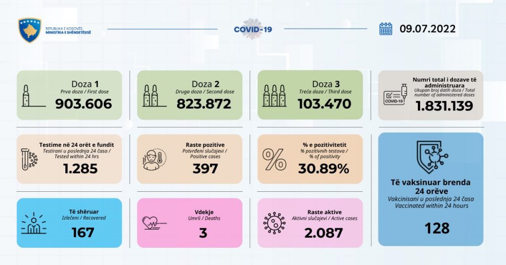 Ndërkaq, nga 1285 testime të kryera, 397 persona kanë rezultuar pozitiv.