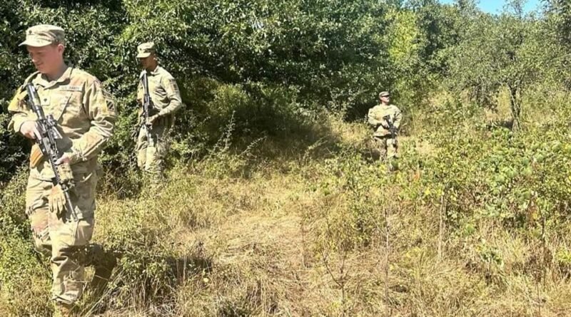 Ushtarët amerikanë të caktuar në Komandën Rajonale në Lindje të misionit të KFOR-it të udhëhequr nga NATO kryen një patrullë brenda komunës së Leposaviqit.