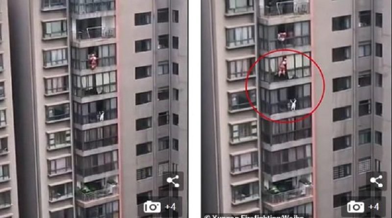 Kinezja 5-vjeçe po qëndronte jashtë hekurave mbrojtës të ballkonit të apartamentit të katit të 13-të, ndërsa zjarrfikësit erdhën në vendin e ngjarjes për ta shpëtuar.