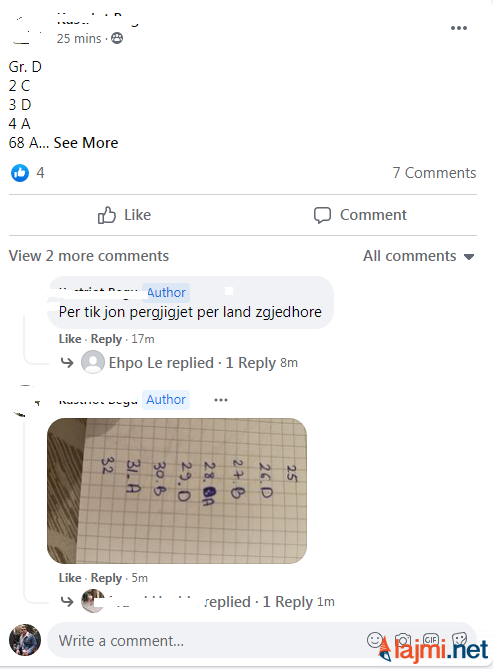 Nxënësit kanë hapur me dhjetra grupe ku po publikojnë provimet dhe nën to po shkruajnë përgjigjet që ata mendojnë se janë të sakta.
