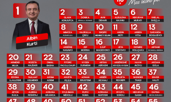 Qendrore VV publikon listën e kandidatëve për deputetë – Albin Kurti me foto, të tjerët veç numra 18/12/2025 mediafokus Lëvizja Vetëvendosje ka publikuar listën me emrat e kandidatëve për deputetë.Ajo që bie në sy, është se në listë, vetëm Albin Kurti figuron me fotografi, kurse të tjerët janë vetëm ‘emra dhe numra’. Mbase LVV i sheh kështu ata që vijnë pas liderit.NDAJENI KËTË ME TË TJERËT: Klikoni që ta ndani me të tjerët në Facebook (Hapet në një dritare të re) Facebook Klikoni për ta ndarë me të tjerët në WhatsApp (Hapet në një dritare të re) WhatsApp