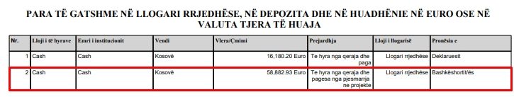 Para të gatshme të deklaruara nga Ramush dhe Anita Haradinaj (Foto: APK)