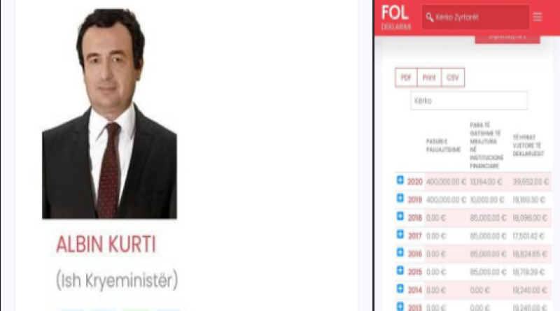 “Albin Kurti deri në vitin 2014 ka pasur Zero (0) euro para të gatshme. Për një vit më vonë (2015) i bëri 85 mijë euro, duke mos shpenzuar as edhe një cent nga këto para për tri vitet e ardhshme.