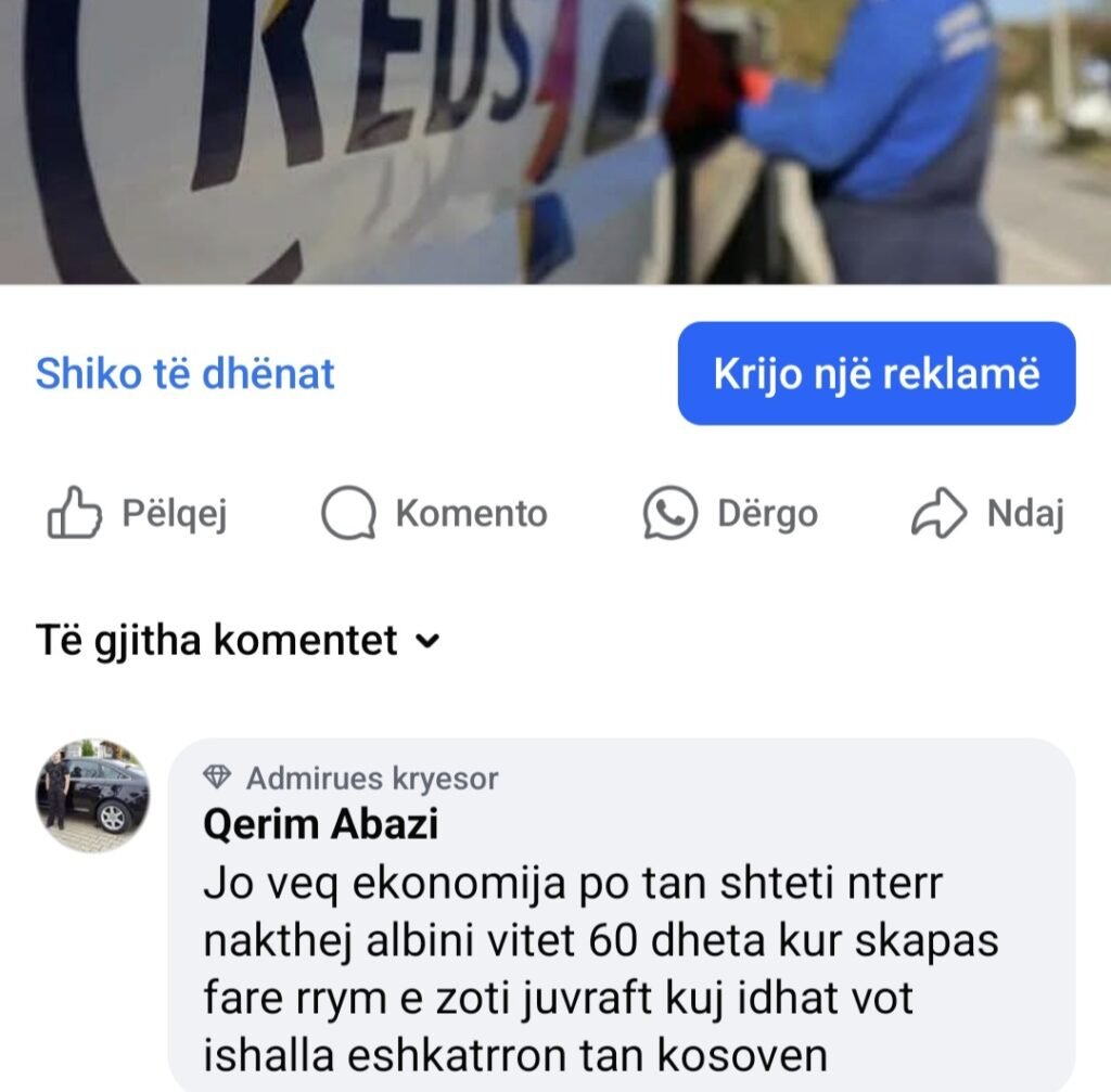 Jo veç ekonomia po tanë shteti n’ terr. Na kthej Albini vitet 60-ta kur s’ka pas fare rrymë. Zoti ju vraftë kujt i dhatë votë. Ishalla e shkatërron tanë Kosovën – ka shpërthyer qytetari Qerim Abazi.
